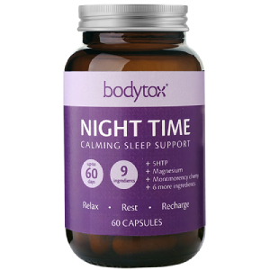 Bodytox Night Time Calming Sleep Support provides a powerful, specific blend of nine vitamins, minerals, botanicals which has been expertly formulated by nutritionists to help mellow your mood and with keeping you calm for you to enjoy a restful night’s sleep.